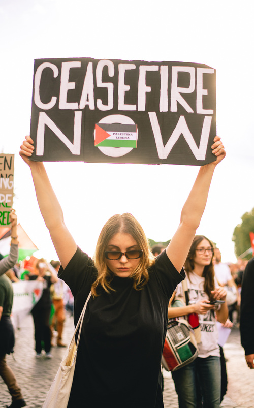 An extraordinarily participated moviment in solidarity with Palestine erupted from October 2023 in Italy, with grassroots movements involved supporting the cause. A diverse range of protesters took to the streets in local and nation-wide called strikes and marches. The protests for Palestine show a peculiar unity among different generations, classes, and origins, and a strong will to intertwine a consistent number of themes (anti-racism, migration rights, anti-imperialism, indigenous resistance) in the same struggle.